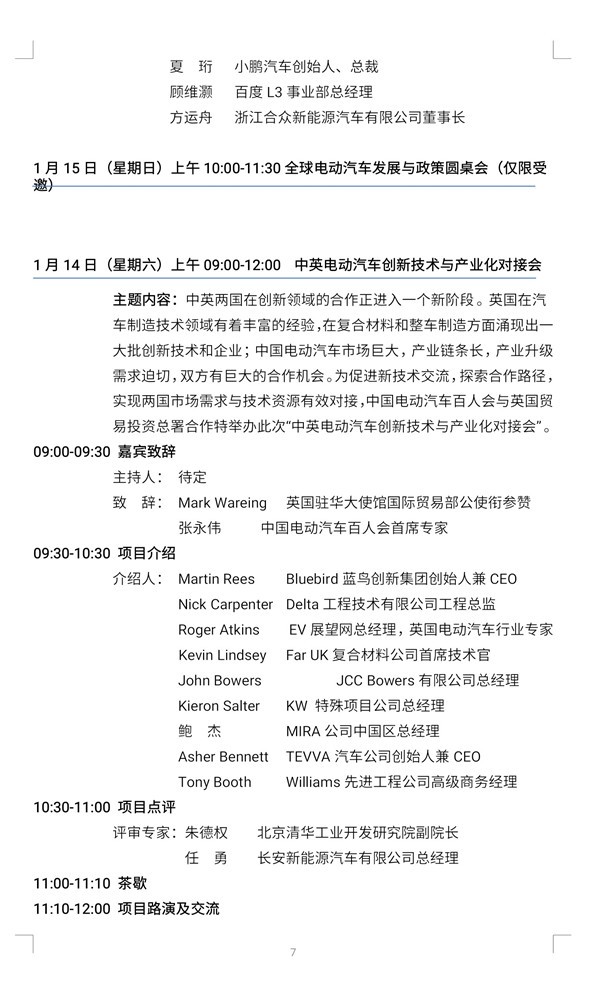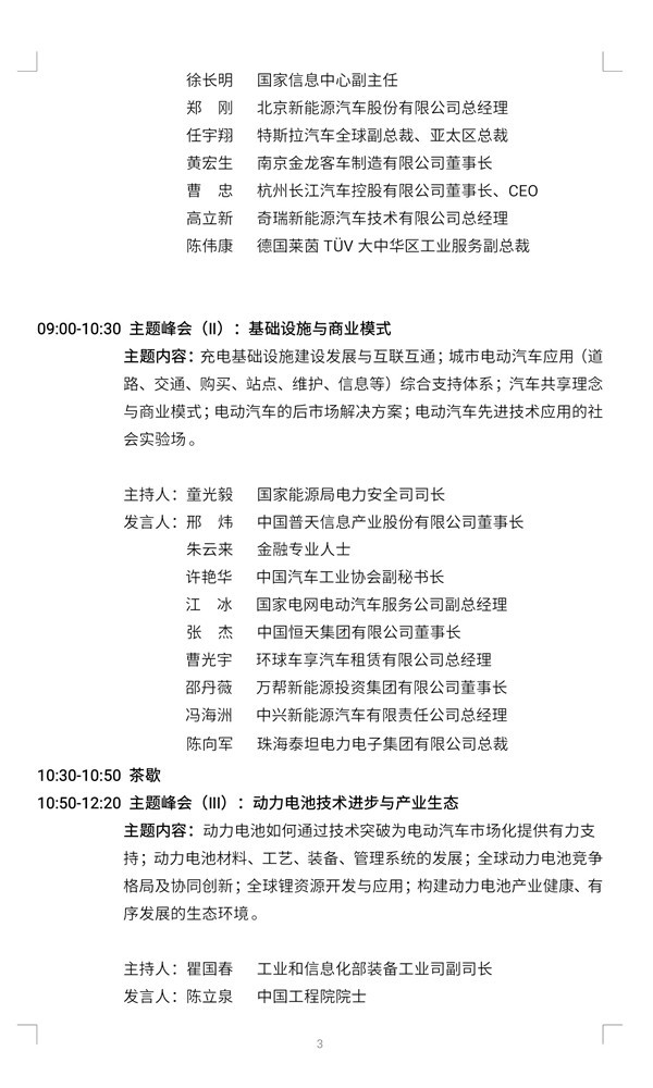 本届论坛定向邀请来自中央有关部委、主要示范城市政府部门、汽车界、能源与交通领域、信息领域、装备制造、投资界等人士参加。目前,发言及参会嘉宾的邀请工作已基本完成,现公布各会议的发言嘉宾。