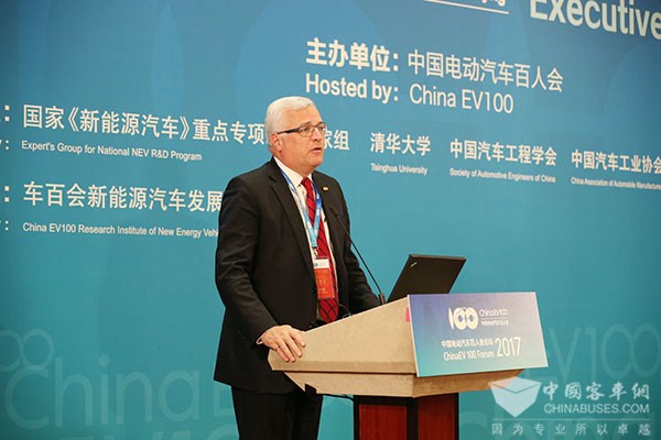 燃料电池现在贵,以后的成本会低于内燃机,但是锂电池怎么做也低不了内燃机,因为材料费用在那儿摆着。一个公交车同样的吨重,三吨到四吨,燃料电池是300公斤,材料是多少一算就可以算出来,所以能源效率高度提升是中国电动汽车发展的真正的驱动力。