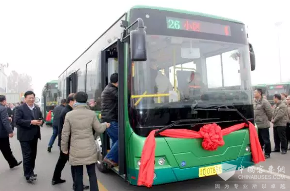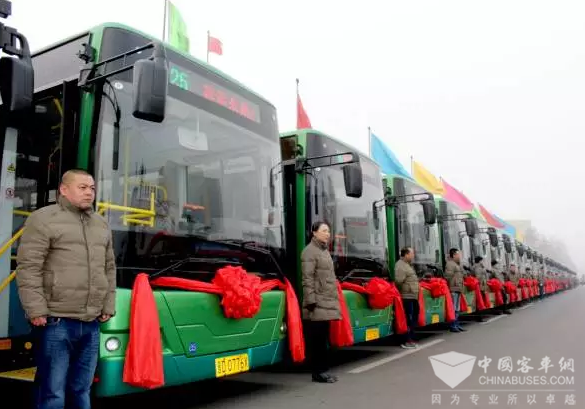 交付仪式上整装待发的长治公交C10纯电动公交车