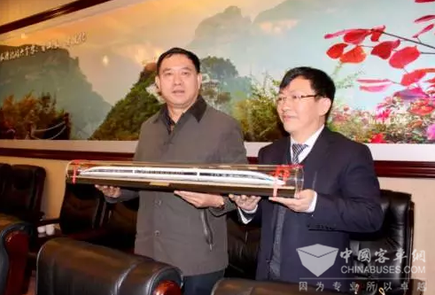 交付仪式上,申宇翔向长治市政府赠送高铁动车组模型