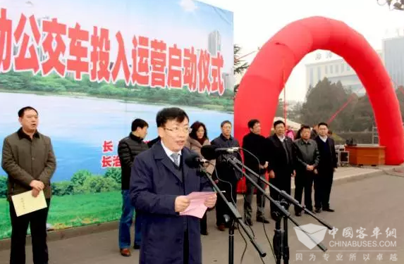 长治市副市长陈鹏飞在发言时表示,中车时代电动为在元旦前顺利交车而加班加点、精心组织生产,仅用45天就完成了500台车的生产任务表示感谢。他说:“我们对中车的品牌很认可,中车时代电动各项服务都做得很好,是有社会责任担当的。”