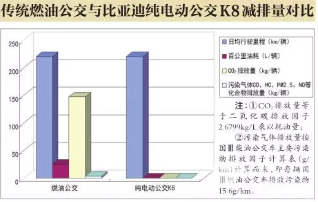 “一辆K8一年节省天然气4.1万方,减少二氧化碳排放量66.4吨;一辆电动环卫车一年节省燃油约4.59万升,减少二氧化碳排放量123吨;一辆e6纯电动出租车一年节省天然气1.4万方,减少二氧化碳排放量22.7吨”,西安比亚迪技术人员介绍道:“将西安市6476台国有公交车、1789辆环卫车、12115辆出租车全部置换成纯电动,每年可节省天然气435亿方,节省柴油8212万升,减少二氧化碳排放量93万吨,折合63.2万吨标煤,而西安2016年节能减排任务为28万吨标煤(40万吨原煤),如果全部换成电动车,完成率将达到226%,环保效益相当于种植阔叶林19.51亿平方米。”