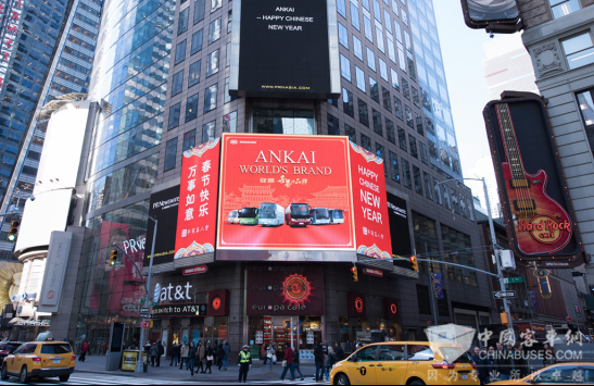 位于美国纽约市中心的时代广场被誉为“世界的十字路口”,是全球最受瞩目的顶级品牌秀场,年均客流量高达4.5亿人次,覆盖每天150万的纽约市中心人流,在时代广场大屏幕出现的企业也被视为在全球市场具有相当的品牌话语权。新年伊始,安凯品牌登陆美国纽约时代广场,向全世界展示中国品牌实力,再度释放了安凯加码国际市场的有力信号。