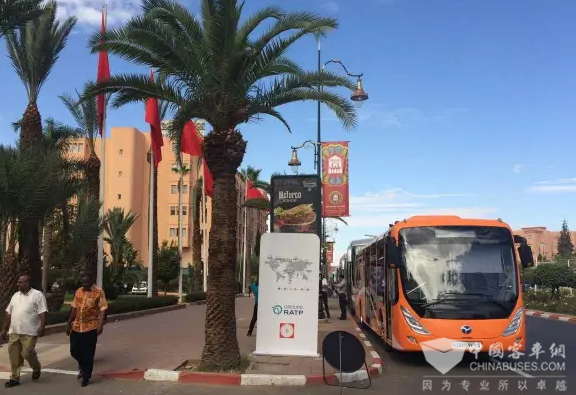 2016年11月,摩洛哥王国马拉喀什市BRT系统引入中国造的扬子江12米纯电动在线充BRT公交车,该批车辆被联合国气候大会组委会选中,作为气候大会专用服务车,这批车辆成建制的,全天候圆满的完成了14天的专车服务后,回到马拉喀什继续为市民服务。这批车辆高效,高品质性能,零故障的运营表现得到联合国气候大会组委会和摩洛哥王国政府的赞誉,同时也引起了菲律宾交通部的高度关注。