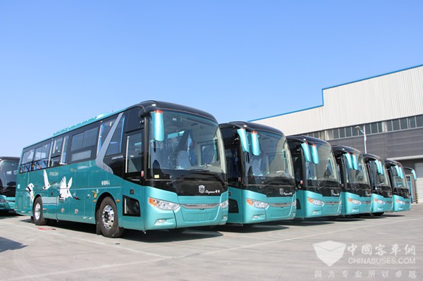 除了青岛温馨巴士的订单,另外还有来自江苏盐城公共交通总公司的48台气电混动旅游团体客车。众所周知,盐城是我国著名的旅游城市,有“东方湿地之都,仙鹤神鹿世界”之称。该批订单车身上的“飞鹤”形象,就是对当地这一特色的彰显,该批订单也将全部用于当地的旅游线路上。