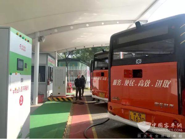 中车电动纯电动公交正在充电