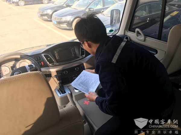 据介绍,会前车辆检查共包括司机自查、车队检查、宇通服务站检查和验车四个环节,且每个环节都需要相关负责人签字,保证责任到人。检查到的车辆问题服务保障人员要迅速处理。其中,最后的验车环节最为全面,也最重要,检查项目包括推拉窗、座椅、车门、发动机、底盘、转向、制动等大大小小90余项。在涉及车辆安全、可靠方面的零部件等都进行排查并保证毫无问题后,车辆才算“过关”。