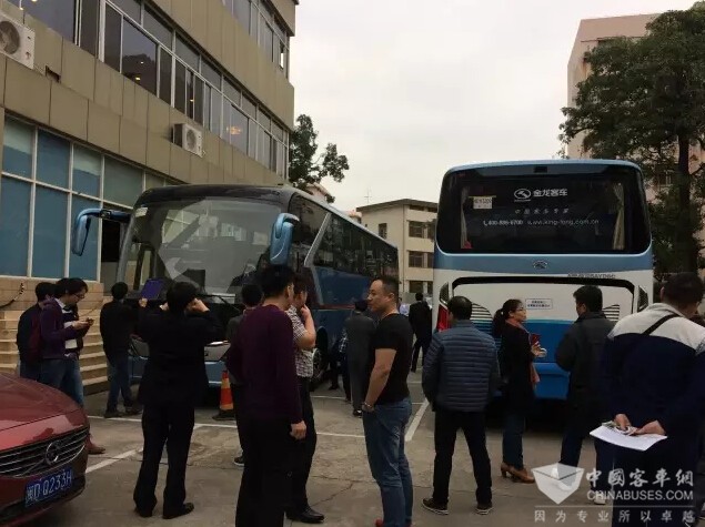 会议期间,与会人员还兴致勃勃地参观了符合1094标准的样车:金龙客车XMQ6105AY和XMQ6127BY。上述两款车型无论是结构布置、车辆配置,还是安全防护等,均符合国际先进水平的1094标准,受到了与会者的好评。