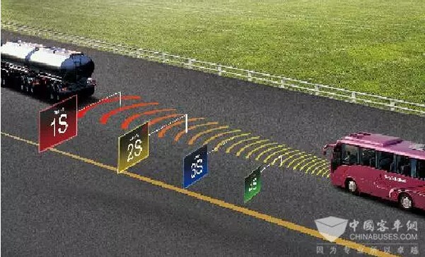 同时,金龙客车清楚地意识到,仅仅被动安全提升车辆安全性、降低乘客的受伤害程度远远不够。因此,从2010年起率先投入一系列主动安全技术的研发和应用。在将要实施的1094标准中,加大了对车辆主动安全技术应用的要求,其中包括车道偏离预警系统与自动紧急制动系动的前撞预警功能的要求。在此标准之前,早在2012年,金龙客车就在业内率先推出自主研发的车道偏离报警系统、前向防撞报警系统、道路自动限速控制系统等主动安全技术利器,并投入市场应用,引领客车安全从“被动”向“主动”转型。