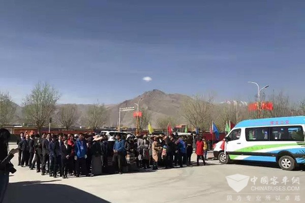 为了见证这一时刻,拉萨市委宣传部、市交通局、市交警支队、市运管局、市公交公司相关领导,堆龙德庆区委书记格桑平,区委副书记、区长杜江等区委领导,以及各乡镇人民政府、区委办、区人大办、区政协办、区委宣传部等各部门主要负责人,另有农牧民群众代表60人,共百余人出席。
