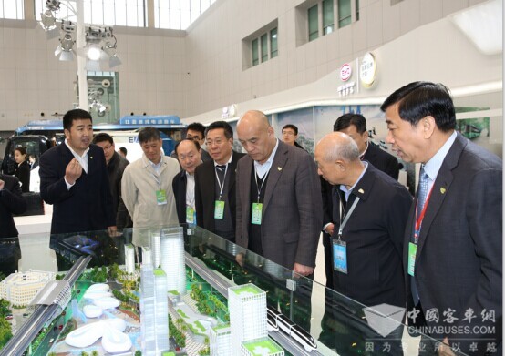 中通总经理孙庆民向参观的公交行业领导介绍中通氢燃料客车