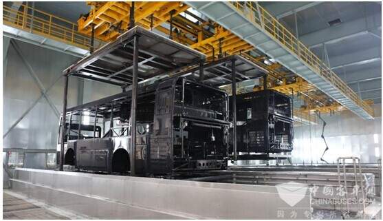 其二是整车电泳技术升级。“目前黄海拥有14个整车电泳槽,目前国内仅有两家客车企业拥有如此规模的整车电泳设备。”李正操向江南网页版介绍,黄海新能源基地在原厂区的基础上借鉴了业内先进技术,整车制造工艺中的焊装、涂装、总装工艺布置及设施的应用汇集并优化了行业的工艺特点。以整车阴极电泳为例,黄海新能源基地整车阴极电泳工艺需经过十三道表面工序处理,电泳盐雾实验防腐指标超过1000小时,是原有工艺的3-4倍,整车防腐效果大幅提升。