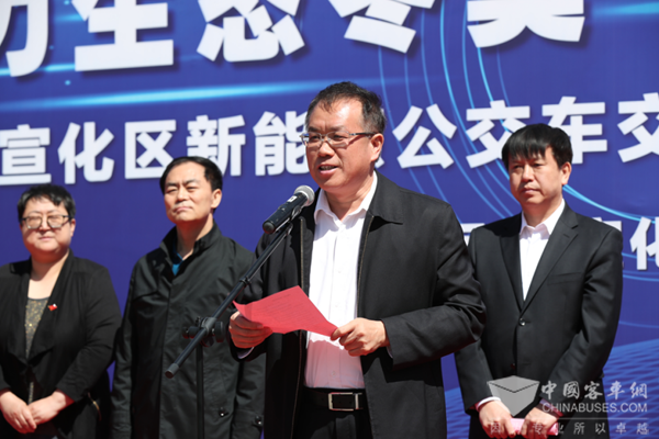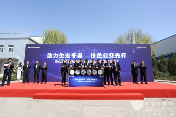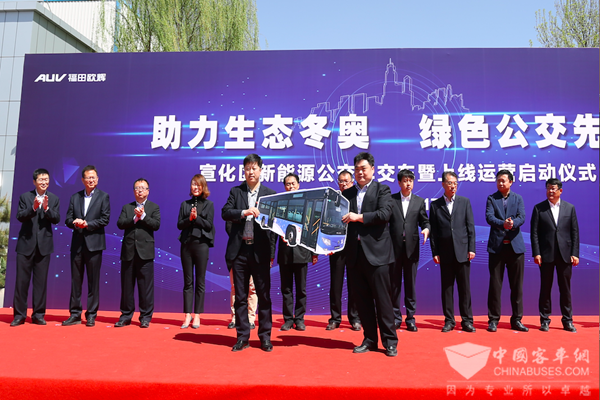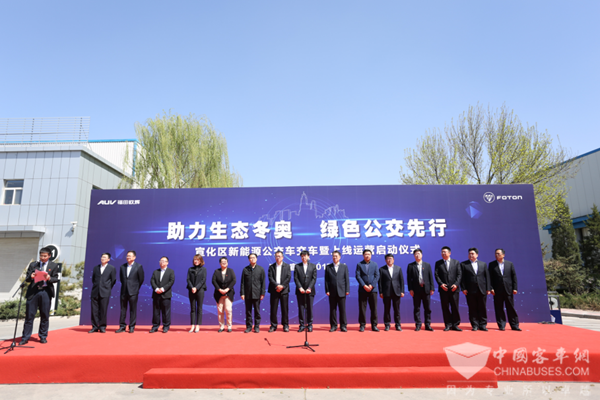 宣化区领导、宣化区交通局领导、宣化公交公司领导、福田汽车集团领导共同启动新能源公交车上线运营仪式