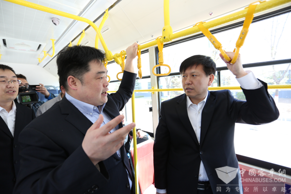 宣化区区委副书记、区长 费再宏乘坐体验福田欧辉BJ6105混合动力新能源客车