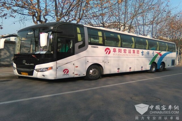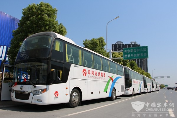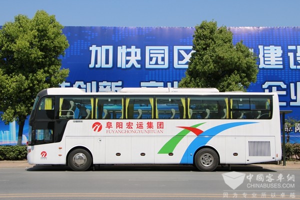 走在阜阳街头的宏运集团旅游班车