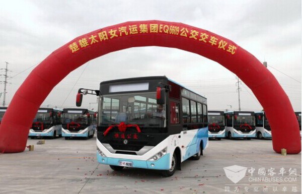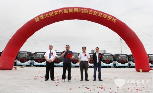 2017年5月5日,“楚雄太阳女汽运集团EQ6609CT公交车交付仪式”在东风超龙公司隆重举行,云南楚雄太阳女汽运集团董事长李石乔、东风超龙副总经理胡大洪等领导莅临现场,共同见证了这一精彩时刻,9辆东风超龙EQ6609CT 公交车正式交付楚雄太阳女汽运集团(以下简称为:太阳女集团)旗下的武定县恒通公交有限公司。