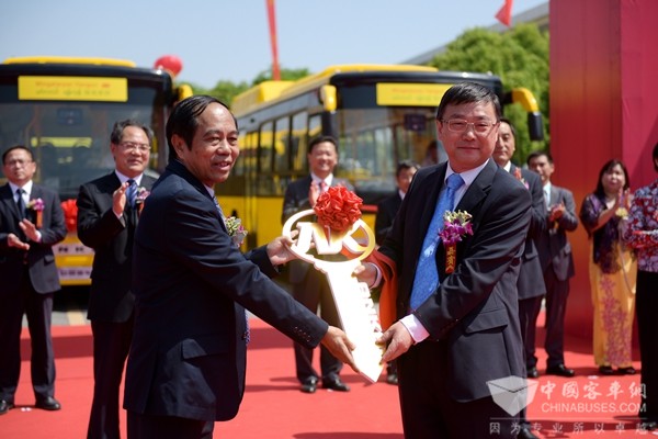 安凯客车总经理查保应将车辆钥匙交给缅甸仰光省交通局秘书长吴貌奥