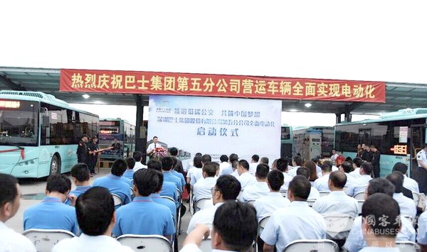 2017年5月,深圳巴士集团第五公司率先实现全面电动化,并于5月10日,举行了全面电动化的启动仪式。深圳巴士集团副总经理袁虎勇,深圳南山区交通局局长高长军等人出席了仪式。