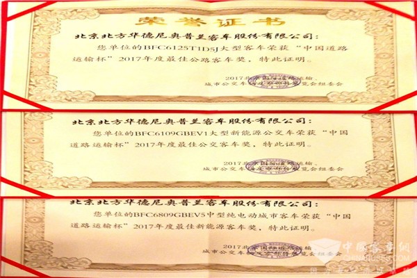8米纯电动BFC6809GBEV5,荣获最佳新能源客车奖。