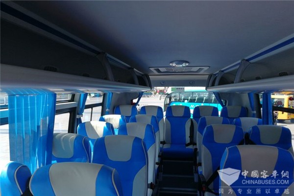 经典需要传承,更需要创新,BFC6120T1D5J不仅整车搭载BFC6120系列底盘系统,传承NEOPLAN全承载车身结构、独立悬架前桥、A型副车架结构及整车全气囊悬架系统,全面实现整车车身结构更高的被动安全性,更以全面提升客车安全技术水平为基础,创新性的配置了多项主动安全电子控制系统。BFC6120T1D5J整车搭载的AEBS自动紧急制动系统,能够通过前视摄像头和前视雷达共同检测车辆前方状况,系统分步进行报警和自主制动操作;LDWS车道偏离预警的配置能够及时修驾驶员无意识造成的车到偏离情况,配合AEBS应用,可减少或避免由于驾驶员精神不集中、疲劳驾驶导致的车道偏离与追尾事故发生;在ABS和TCS功能上进一步扩展的ESC电子稳定控制系统,可对车辆纵向和横向稳定性进行控制,保证车辆按照驾驶员的意识行驶,可帮助减少因客车翻车或失控造成的事故,具有高新技术含量的ESC装置将可以帮助实现降低50%的交通事故死亡率;同时配置的360全景环视系统,达到1000kpa气压的制动储气筒,后桥盘式制动和胎压监测,全面打造了北方客车特有的“超级安全”组合。这款面向高端旅游及商务团体的高端客车,无论高端化、高智能化、还是高安全性能体现上,都完美实现北方客车对高品质、高安全产品的需求。