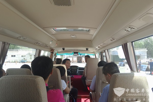 在品鉴过程之中,客户还特别感受了考斯特商旅领航版的静音体验,不但动力出众,在舒适性配置方面毫不妥协。进口通用V8汽油发动机,降噪静音效果远优于国内同级别柴油发动机。配合升级款低噪轻薄空调,整车NVH静音技术,在吸声隔音结构设计基础上应用了大量隔音降噪特种材料,实现车辆在90KM/h时噪音仅为71分贝。配备贴心的新风换气系统、粉尘过滤装置,无论是“开考斯特”还是“坐考斯特“都更加安心惬意。