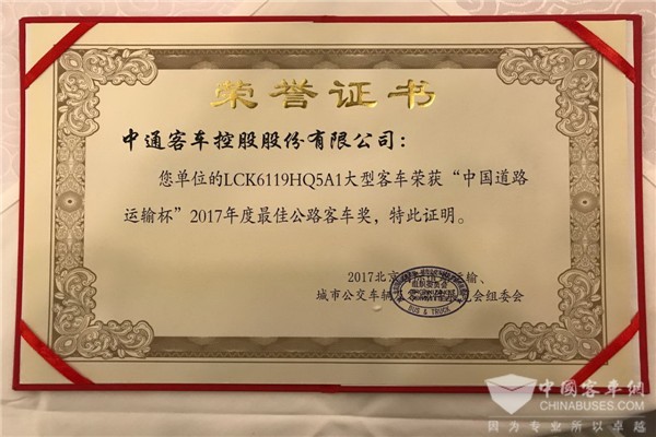 5月25日,在《中国汽车报》组织的首届“我心中的梦想客车”评选中,中通此款产品获评“梦想客车”,更是证明了此款产品的优良性能,也更坚定了中通客车打造优秀产品、服务绿色交通的信心。