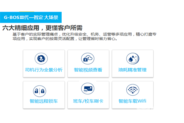 它进一步解决了用户痛点,比如,可进行司机行为全景分析,带来的好处是可改善因差异化驾驶习惯导致的油耗过高和危险驾驶行为,保障司机安全与企业利益。又比如可进行智能远程锁车,这是为了预防车辆租赁期间的违规行为,运行中不可锁车,锁车后也可临时解锁,降低了误锁风险。智能视频查看、油耗精准管理、班车及校车刷卡、智能车载WiFi等更是围绕安全监控、油耗管理、方便快捷、提升上座率等方面逐一升级,用户得到的是更强的盈利能力。