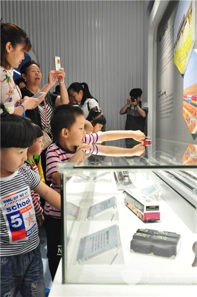 孩子们满怀期待地看着中车电动的汽车模型,好喜欢啊