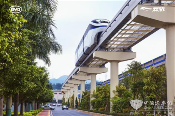 据介绍,“云轨”是比亚迪为解决城市拥堵问题倾心打造的轨道交通产品,属于中小运量的轨道交通系统。“云轨”采用全铝轻型和流线型车身设计,搭载铁电池储能系统、永磁轮边直驱电机、能量回馈系统等领先科技,具有独立路权、编组灵活、投资成本低、建设周期短、环境适应能力强、景观性好等特点,可以作为中、小城市的骨干线和大、中城市的加密线、商务区和游览区等线路。