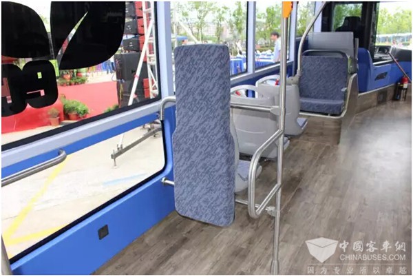 比国内纯电动巴士多出的一个车门,与城轨车辆相同的车门打开方式,可防止雨滴进入的内翻式小呼吸窗,每个座位区域都有的USB充电口,可关闭调节的空调出风口,供残疾人上下的斜坡翻板以及特定休息区……