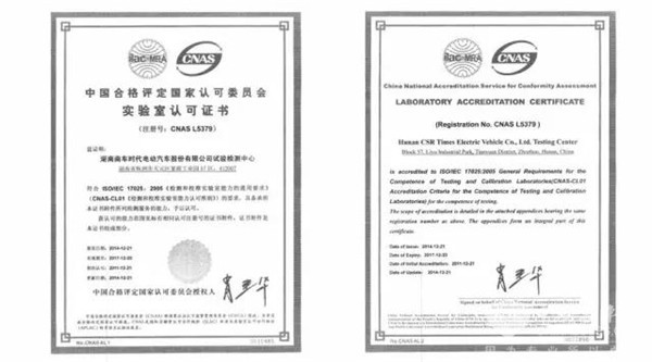 值得一提的是,中车电动在业内率先拿到了中国合格评定国家认可委员会(简称CNAS)认证。通过CNAS认证后,意味着中车电动试验检测中心不仅可以为自己的产品出具权威检测报告,还可作为第三方承担相关的检测工作。由此可窥见中车电动试验检测的实力。