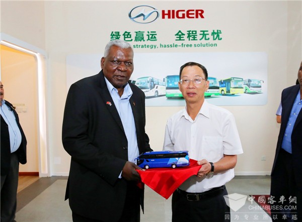 黄书平向拉索主席赠送海格客车车模
