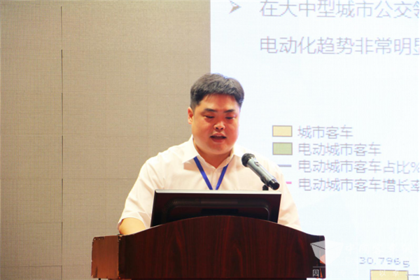 福田汽车欧辉客车事业部国内营销公司常务副总经理王晓亮在研讨会做重要介绍
