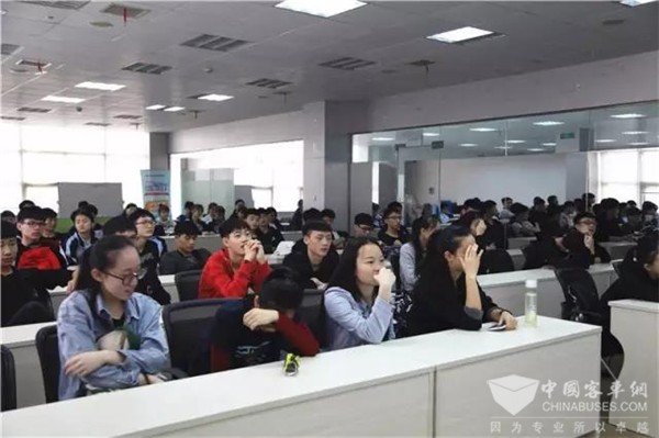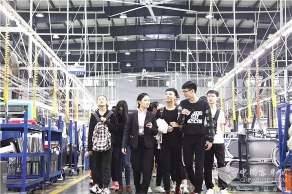 ▲学生进企活动 2016年10月,株洲市八中60多位艺术生来到中车电动总装车间参观了解新能源公交车智能化的装配工艺流程、高品质高严谨的试验检测中心。