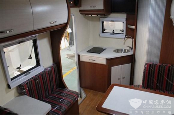 宇通客车旗下凯伦宾威房车ZK5180XLJ1,采用高档进口内饰材料,环保性能卓越。 上翻式气支撑顶铺,车内空间有效利用。对坐沙发卡座,娱乐、洽谈、用餐更加舒适。行、驻车空调系统,让您时刻享受最舒适的温度。多铺位设计,营造良好的车内睡眠环境。灵活拉伸结构电视架,移动电视接收系统,车内空间自由变换。淋浴一体式卫生间,完善的厨房设施,房车专用冰箱,全方位可控灯具,营造最舒适的车内光线环境。进口房车专用车窗,视野更开阔,美丽风景尽收眼底。