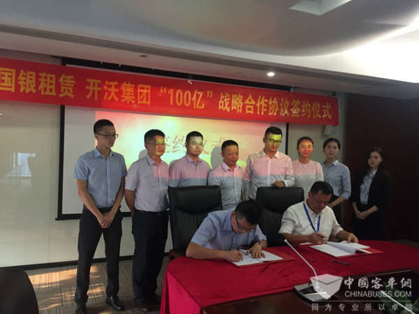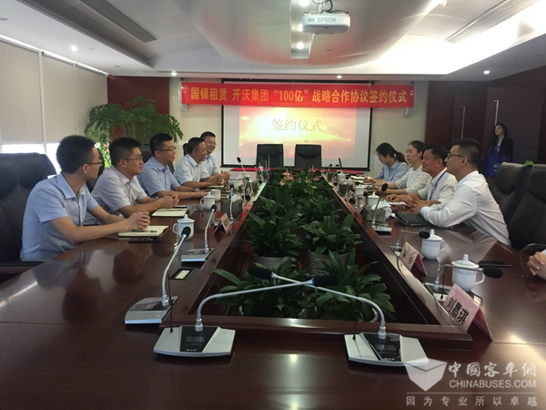 2017年9月27日,开沃新能源汽车集团有限公司(以下简称“开沃集团”)与国银金融租赁股份有限公司(以下简称“国银租赁”)在深圳创维半导体大厦签署战略合作协议。开沃集团黄宏生董事长、国银租赁艾阳副总裁出席签约仪式并代表公司签字。在未来的5年,双方将在开沃集团及下属公司自身资金需求、开沃集团全系车型销售、以及开沃金融(融资租赁公司、供应链公司)配套资金需求等方面开展合作。本次战略合作协议的签署,标志着双方充分利用自身优势,在新能源汽车领域全面战略合作的开始。