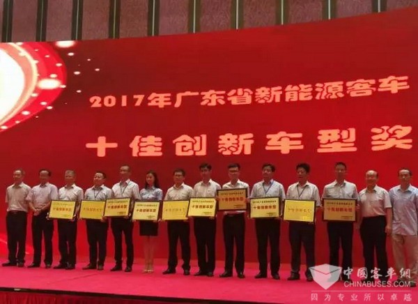 福田欧辉客车顺利夺得2017年广东新能源客车十佳创新车型奖