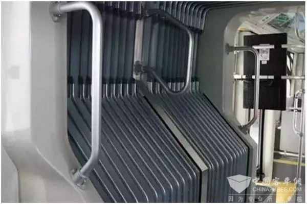 值得一提的是这款“巨无霸”中间的铰链式连接管将车分为前后两部分,形状像地铁的两节车厢。而中间的铰链式连接管形似手风琴的风箱,在行驶转弯的时候,具有伸缩弹性,能很好地将车身前后两部分协调带动起来,不会夹伤乘客。