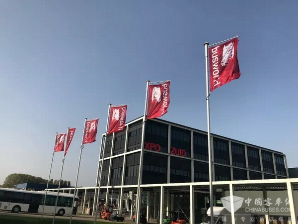 18米BRT早已抵达科特赖克展馆,目前中国中车展位正在进行搭建