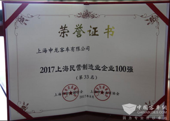 上海企业百强榜由上海市企业联合会、上海市企业家协会和上海市经济团体联合会主办,意在表彰在推动上海经济和社会发展中作出重要贡献的企业。榜单以企业营收作为入围标准,从资产总额、所有者权益、研发费用等指标进行综合测评,体现了企业规模,更彰显了企业的综合实力。获此荣誉是对申龙客车取得各项成果的肯定,同时也是公司发展的重要里程碑。