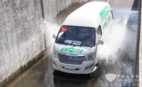 金旅纯电海狮在比赛中进行涉水测试