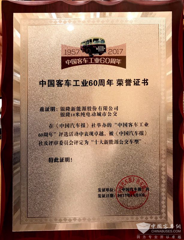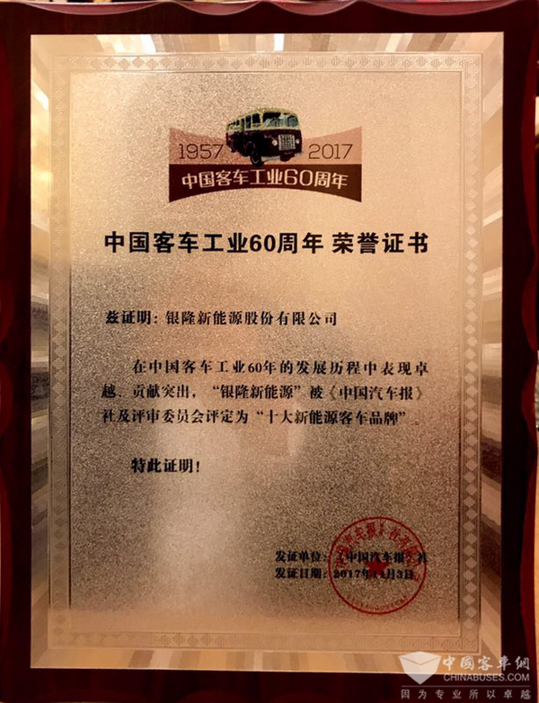 中国客车工业60周年,银隆新能源斩获大奖