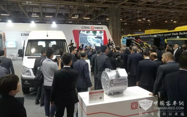展会现场,中车电动第五代纯电驱动系统平台“T”动力、双绕组驱动电机、永磁同步电机、IGBT、传感器等家族成员一同亮相,展示了中车电动强大的全产业链生态。