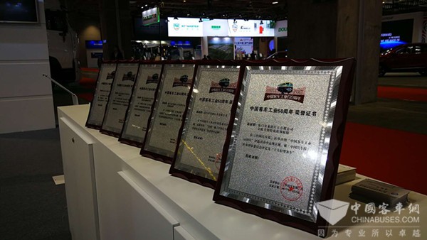 在车展举行之际,纪念中国客车工业60周年颁奖盛典在此隆重举行。金旅客车一举斩获了包括“优秀客车品牌”“优秀电动车品牌”“十大公路/旅游客车” “十大轻型客车”在内的六项大奖。