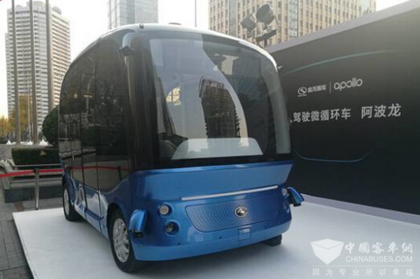 2017年11月16日在京举行的百度世界大会上,百度创始人、CEO李彦宏在主题演讲中表示,百度与金龙客车联合开发的第二代无人驾驶微循环车阿波龙将于2018年实现商用化量产及上线运营。同时,“阿波龙”也正式面向公众亮相。