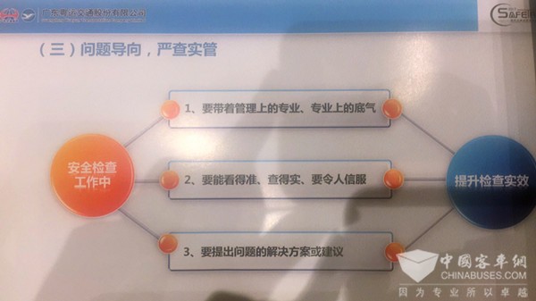近年来,交通运输行业展开全面深化改革的壮丽画卷,带给粤运交通新的发展机遇,公司加快转型升级、实施混合所有制创新发展、致力于成为“行业突围者”;新态势下、新格局中,我们牢固树立红线意识,更加坚定地践行“安全发展”理念,为向公众提供安全的、值得信赖的、美好的出行服务而持续努力和探索。下面,谨将粤运交通在道路运输安全管理方面的一些工作,向大家进行汇报。