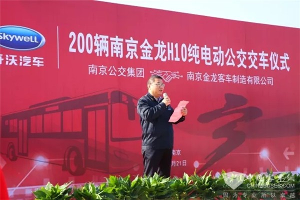 2017年11月2日,南京公交集团开标了1900台纯电动公交车,南京金龙中标487辆,于11月4日正式签订合同。这也是南京明确2020年完成公交电动化后首次大批量采购纯电动公交车。12月21日,南京金龙首批200辆10.5米纯电动公交车正式交付南京公交集团江南公交公司,成为此次中标企业中首家交付的车企,充分体现了南京金龙的技术实力、生产能力和服务诚意。南京市交通局局长陈雷,南京公交集团董事长朱明,南京公交集团江南公交副总经理常青,南京公交集团扬子公交副总经理刘晋祥,开沃新能源汽车集团、南京金龙副总裁樊文堂,开沃新能源汽车集团、南京金龙副总裁诸萍,开沃新能源汽车集团、南京金龙首席技术官张蒙阳出席本次交车仪式。