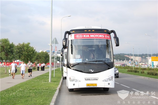 在重大活动等场合,同样能见到金龙客车服务的身影,今年在俄罗斯举行的联合会杯上,靓丽的金龙大巴穿梭于各赛场之间,接送包括裁判、工作人员等在内的贵宾, 再一次见证了金龙客车在俄罗斯市场的实力。