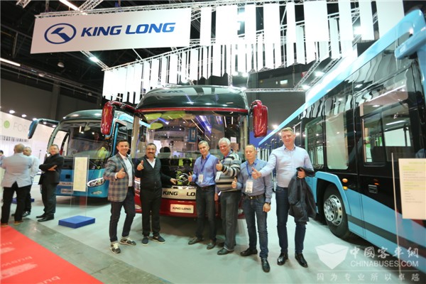 2017年10月,在比利时世界客车博览会上,金龙客车重磅展出龙威II代C13HD、全面升级的中巴C9、18米BRT以及14米纯电动摆渡车APE14,并以VR形式在国际舞台首秀中国氢燃料电池客车,全面展示了金龙客车ECO高端制造。