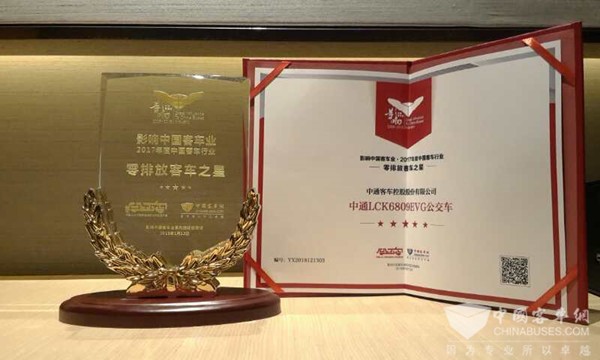 活动当晚,“第12届影响中国客车业年度盘点活动”评选结果正式揭晓,中通客车荣获2017年度“中国客车行业最佳服务”奖,中通LCK6809EVG纯电动客车摘得2017年度“零排放客车之星”。